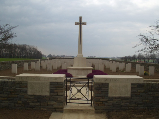 Accessible de la route de Godewaersvelde à Eecke par un chemin de terre : le Bertenacre British Military Cemetery, est situé dans la commune de Flêtre.