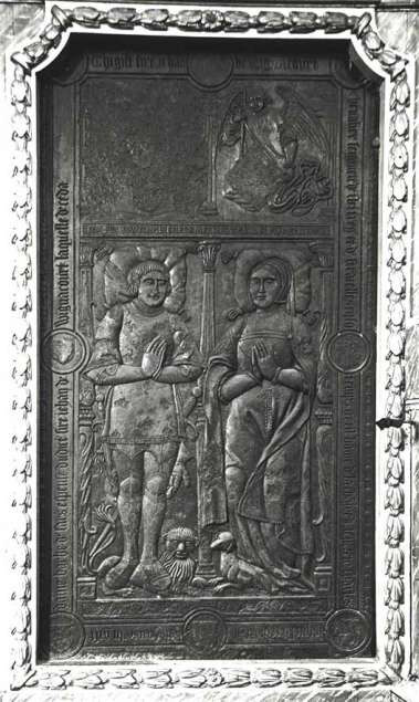 • deux pierres tombales du XVIème siècle sculptées en relief représentant des anciens seigneurs et dames de Flêtre, ...